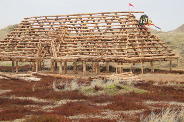 Am vergangenen Donnerstag war es endlich soweit: im archäologischen Areal an der Vogelkoje Meeram bei Nebel konnte das Richtfest des Eisenzeitlichen Hauses gefeiert werden. Bei kühlen 5°C und Wind fanden sich Handwerker, Vertreter der Amrumer Gemeinden, des Öömrang Ferian und andere Gäste am Eisenzeitlichen Haus ein. Als besondere Gäste gab sich eine 5-köpfige Gesandtschaft vom Oldtidspark Hjemsted (Dänemark) die Ehre. Diese kamen sogar in zeitgemäßer (d.h. eisenzeitlicher) Kleidung und vermittelten dadurch ein besonderes Flair.